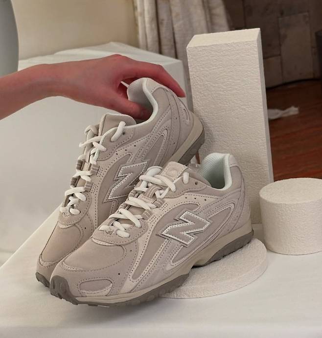 현장의 주인공이었던 신제품 뉴발란스 204L는 그녀의 스타일을 더욱 돋보이게 해주는 결정적인 아이템이었습니다. 화이트와 아이보리 톤의 스니커즈는 미니 플리츠 스커트와 자연스럽게 이어지며 다리를 길어 보이게 했고, 전체적인 룩에 스포티하면서도 세련된 이미지를 부여했습니다.