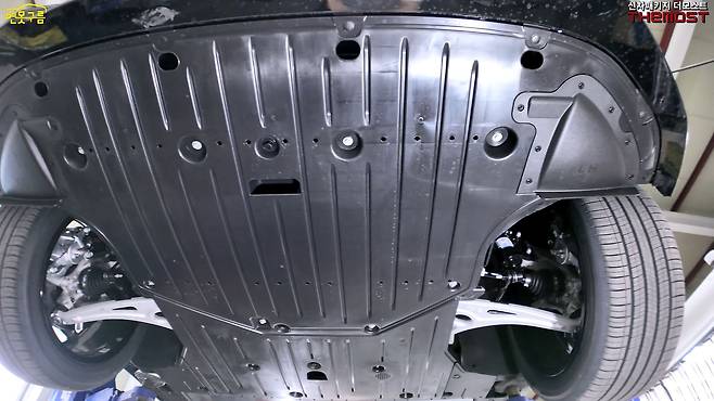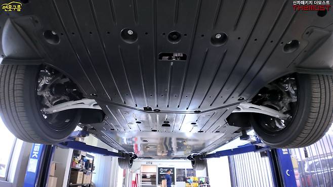 EV4의 가장 큰 경쟁력 중 하나는 동급 최고 수준의 하체 마감 품질이다. 배터리 영역을 제외한 거의 모든 하부가 풀 언더 커버로 완벽하게 감싸여 있으며, 사이드 실 패널 안쪽까지 꼼꼼하게 마감 처리되어 있다.