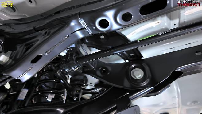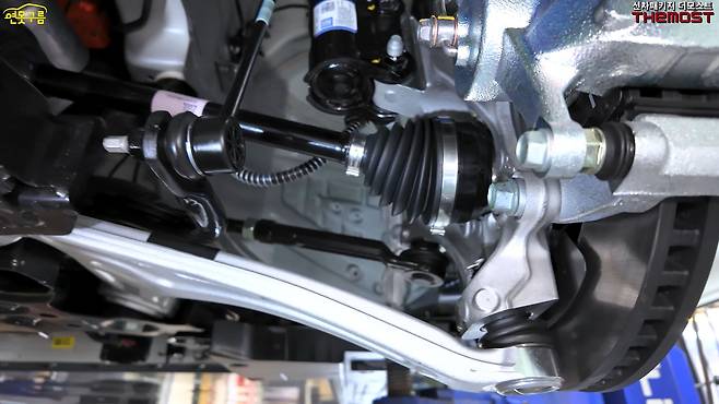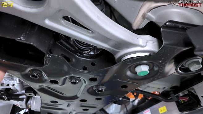 알루미늄 너클과 로어암을 사용했으며, 특히 로어암 부싱은 중형급 이상 차량 수준의 대형 사이즈로 적용되어 내구성을 높였다.