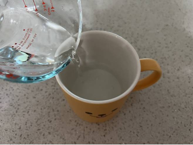 따뜻한 물을 넣었기 때문에 전자레인지 1분만 돌려주세요