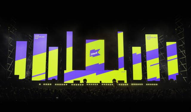 그래서 케이를 깃발 형상으로 제작했어요. 특히 사선과 비비드한 컬러를 사용해 경쾌한 이미지를 풍기도록 했습니다. ‘케이팝을 이끄는 선봉자’. ‘재밌는 콘텐츠가 가득한 원더랜드의 깃발’. ‘팬덤을 상징하는 유니언’. 이런 세계관들을 한 데 모아 K 컬처를 표현했죠.