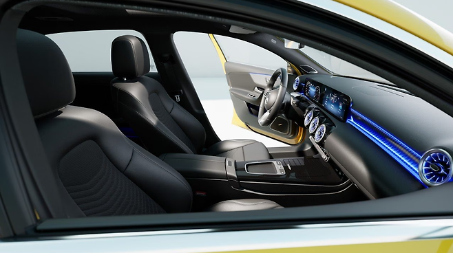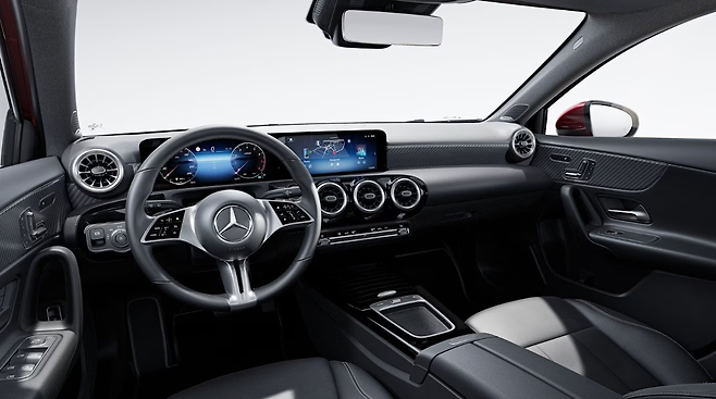이번 부분 변경에서 상품성이 강화된 A클래스는 스포티한 외관, 하이테크 실내, 48V 마일드 하이브리드 시스템을 특징으로 한다.