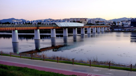 금호강 위로 이어진 철교에서 감성적인 풍경을 만끽할 수 있습니다.