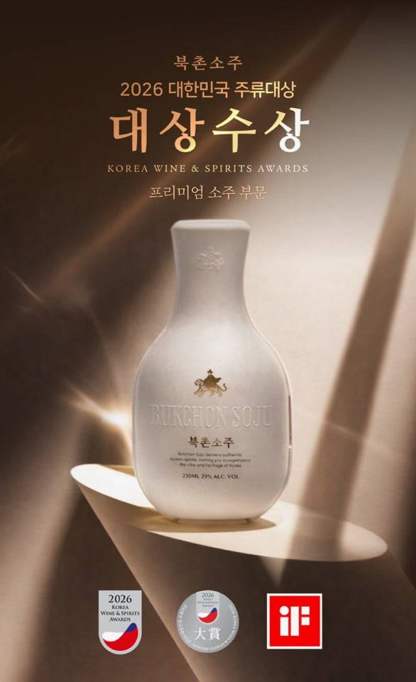 북촌소주는 앞서 세계 3대 디자인부문 상인 독일 iF 디자인 어워드 2026에서도 수상했다. 북촌소주의 패키지 디자인은 조선 분청사기와 백자에서 영감을 받은 도자기형 병 형태, 친환경 종이 패키징, 백호 모티프를 담아 한국 전통 미감을 현대적으로 재해석한 것으로 평가받았다. 술의 맛과 철학이 디자인 언어로까지 온전히 구현된 브랜드라는 점에서, 국내외 심사위원단의 주목을 받았다.