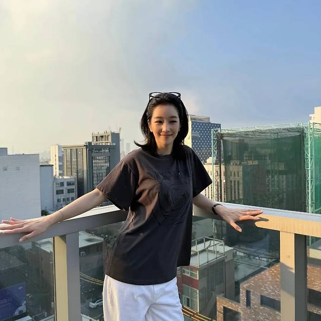 오랜만에 SNS에 모습을 드러낸 서예지는, 도심 풍경을 배경 삼아 한껏 여유로워 보인다.