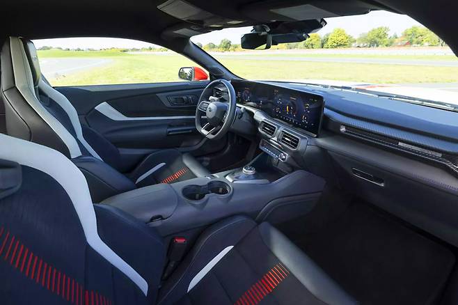 전반적인 인테리어는 기존 머스탱의 디자인 언어를 계승하면서도 독창적인 요소를 더해 차별화를 꾀했다.