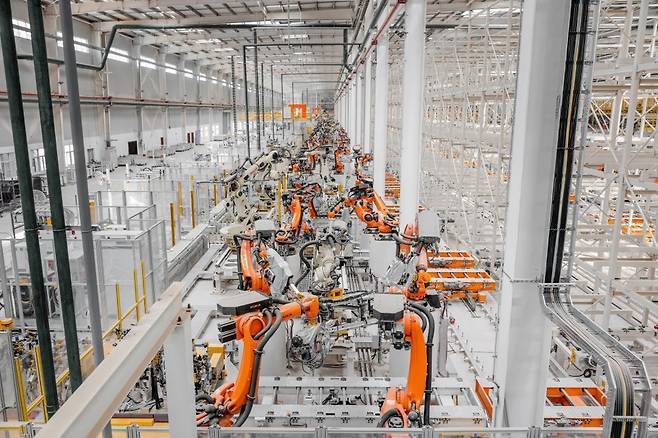 정저우 공장은 원자재(리튬·흑연) 현지조달, 배터리 단지, 모터·시트·램프 등 56개 핵심 부품 생산 공장을 클러스터화해 ‘수직 계열화’ 생산 시스템을 완성했다. 전체 15개 주요 공정, 6만 명 근무 인력 외에 2,400~2,500대의 로봇팔이 용접·스템핑·도장·조립 작업을 24시간 동시 가동하며, 각 라인마다 실시간 AI 검수와 자동 운영 시스템으로 품질 일관성과 생산 속도를 극대화했다.