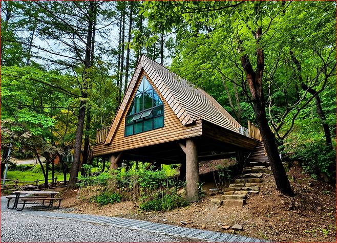 숲속의 집: 통나무 오두막 형태로 가족 단위 여행객에게 적합