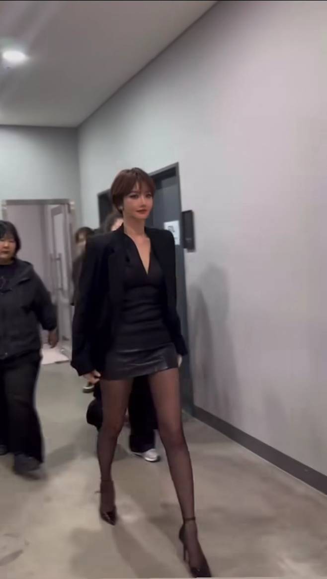 특히 고준희는 블랙 타이즈와 함께 스트랩이 부착된 스틸레토 힐을 신어 긴 다리와 슬림한 실루엣을 연출했습니다.