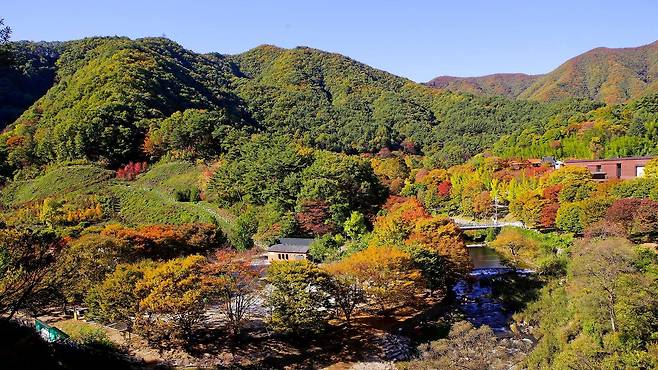 폭포를 지나면 숲 속에 자리한 방화동 가족휴가촌이 나옵니다. 이곳은 1992년, 국내 최초의 가족 단위 휴양지로 문을 열었습니다. 오토캠핑장, 목재체험관, 숙박동, 피크닉장이 조성되어 자연 속에서 하루 머물며 힐링하기 좋은 공간입니다. 특히 여름엔 맑은 계곡물과 함께 아이들이 물놀이를 즐기고, 가을에는 산책과 삼림욕으로 마음을 달래기 좋습니다. 가을 햇살에 물든 숲길을 걸으며 가족과 함께 웃는 모습, 그 풍경만으로도 여행의 의미가 충분하지요.