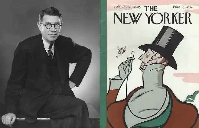 더 뉴요커를 창간한 뉴욕 타임즈의 기자 헤럴드 로스와 더 뉴요커 1호 표지 이미지