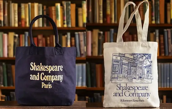 셰익스피어 앤 컴퍼니의 에코백은 이제 웹사이트에서 전 세계로 배송된다.