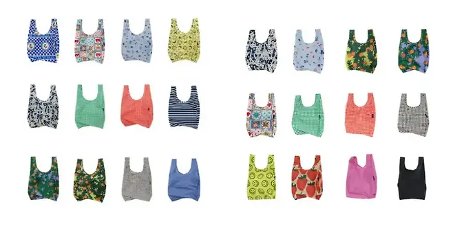 심플한 디자인의 에코백 하면 바쿠(BAGGU)를 빼놓을 수 없다. 바쿠는 2007년, 재사용 가능한 쇼핑백을 만들자는 취지로 가방을 꾸준히 만들고 있다. 폐기물을 최소화하고 지속 가능한 재료를 사용해서 만들고 있으며, 그중 가장 유명한 건 일명 ‘장바구니’라고 불리는 모양의 바쿠 에코백이다. 이 제품은 립스톱 나일론(Ripstop Nylon) 소재를 사용해 가볍고 휴대하기 편하며, 무엇보다 생기발랄하고 재치 넘치는 다양한 디자인이 매력적이다. 바쿠백에서 좋아하는 디자인을 발견하지 못하며 스스로의 취향을 재고해 봐야 한다는 이야기가 있을 정도로 다양한 디자인을 계속해서 선보이고 있다.