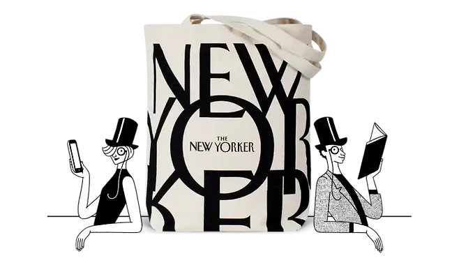 미국의 시사 주간지, 더 뉴요커(The New Yorker)는 뉴욕 타임즈(The New York Times) 기자 출신 부부에 의해 1925년에 창간된 잡지다. 잡지 치고는 특별한 점이 있는데, 이 잡지는 내지에 사진을 거의 쓰지 않는다. 대신 일러스트로 그 자리를 채운다. 그 어느 잡지보다 일러스트가 많이 그리고 자주 사용되고, 자연스럽게 세계의 수많은 일러스트레이터의 화풍을 엿볼 수 있는 특이한 매체가 되었다. 아무래도 주간지이다 보니 구독 시스템이 운영에 있어서 꽤나 중요한 부분을 차지하는데 이들은 구독자에게 자신들만의 감각적인 에코백을 사은품으로 주는 것으로 유명하다.