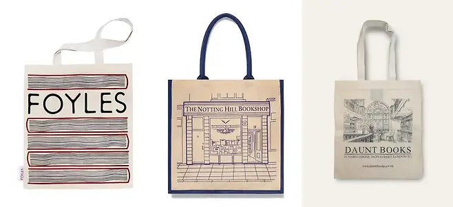 그 밖에 런던의 포일스(Foyles Bookshop), 노팅힐(The Notting Hill Bookshop), 던트(Daunt Books), 파리의 이봉 랑베르(Yvon Rambert), 오에프알(OFR Bookshop) 등 유명 서점들은 웹사이트에 ‘Tote Bag’ 카테고리를 버젓이 보이게 해놓을 정도로 나름의 팬층을 형성하며 많은 관심을 받고 있다.
