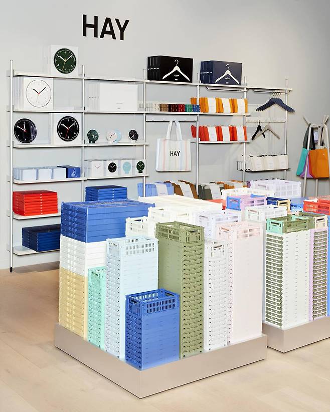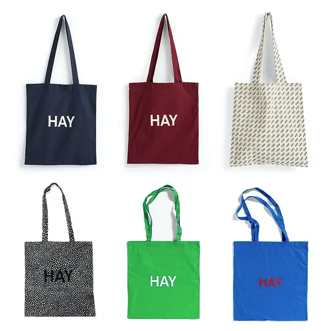 단순한 알파벳 세 글자로 큰 유행을 이끈 에코백이 있다. 그 주인공은 바로 헤이(HAY). 군더더기 없이 깔끔한 폰트의 이 브랜드는 2002년에 설립된 덴마크 코펜하겐의 가구 브래드다. 2014년 밀라노 가구 박람회에서 그들이 선보인 팝업스토어 ‘HAY Mini Market’은 테이프, 손톱깎이 등 일상에서 사용하는 평범한 제품을 디자인적으로 풀어내면서 세계의 주목을 받았다. 이후 파리 르 봉 마르셰(Le Bon Marché) 백화점과 도쿄 츠타야(TSUTAYA) 서점 등 전 세계로 뻗어 나가게 되었다. 가구는 물론 생활밀착형 제품들을 감각적인 컬러와 디자인으로 풀어내다 보니 자연스레 에코백 소비층과의 접점이 맞아 떨어졌고, 심플한 로고가 박힌 에코백에 매력을 느끼게 되었다.