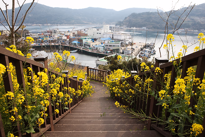 섬의 또 다른 매력은 동도에 가득 피어나는 동백꽃입니다. 겨울철에 붉게 물든 동백나무들을 따라 걷는 길은 낭만적인 섬 여행의 정취를 한층 더 살려주며, 봄이 되면 신록의 숲길로 바뀌어 사계절 내내 다른 풍경을 선사합니다. 또한 서도에 자리한 수월산 정상에 오르면 탁 트인 바다와 섬 풍경을 한눈에 내려다볼 수 있어, 거문도의 다채로운 매력을 한껏 느낄 수 있습니다.