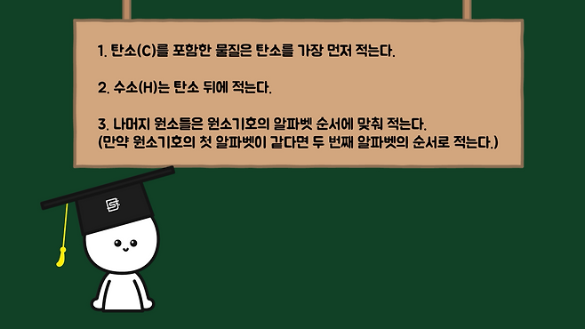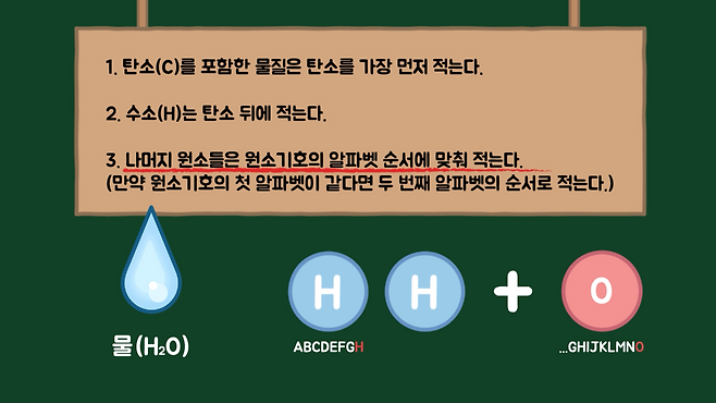 만약 한 가지 물질을 두고 사람마다 자신만의 규칙으로 표현한다면 소통이 되지 않을 겁니다. 이런 문제를 예방하고자 표현 방식을 통일했고, 물질의 구성원소를 효과적으로 표현하는 방향으로 만들어졌습니다.