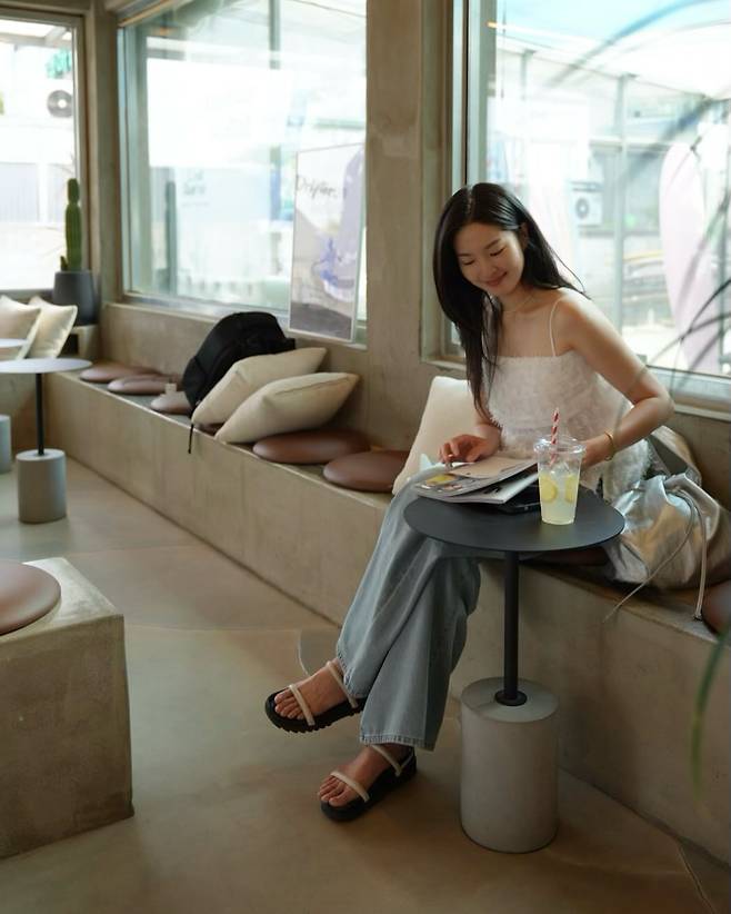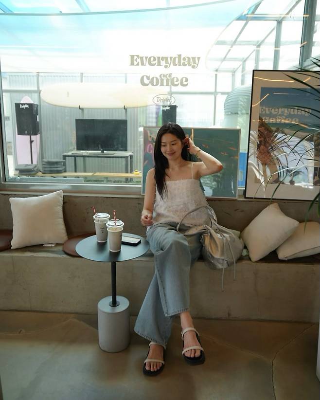 공개된 사진 속 류이서는 화사한 레이스 슬리브리스 탑과 와이드 데님 팬츠로 내추럴하면서도 세련된 여름 무드를 완성했다.