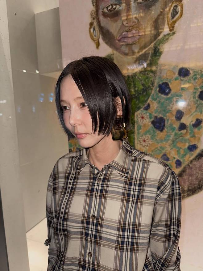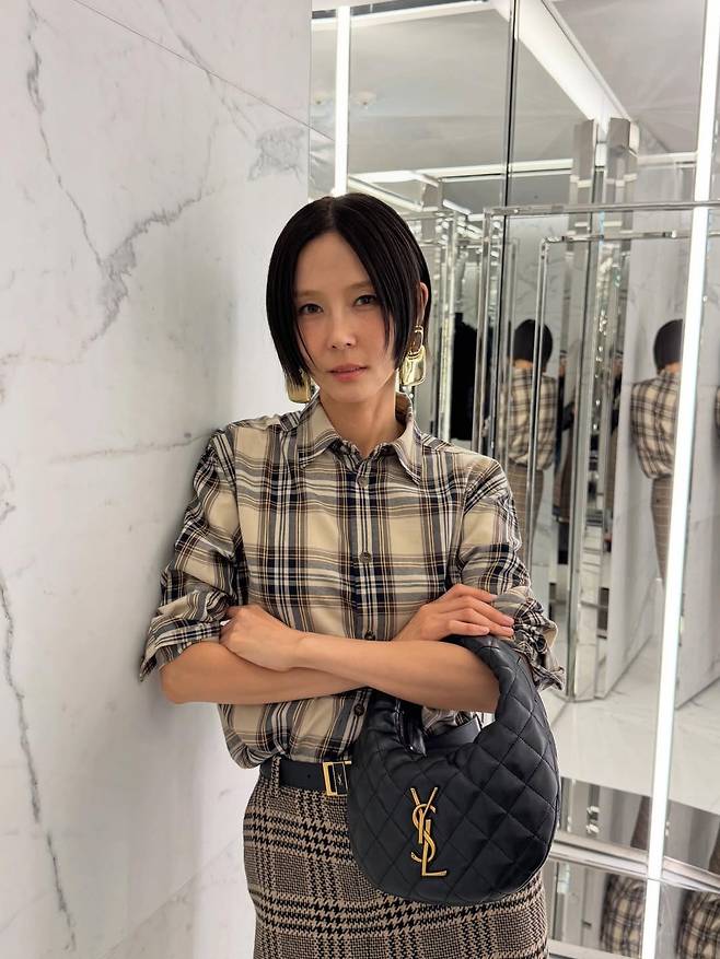 김나영은 가장 클래식한 '체크' 패턴으로 자신이 왜 '40대 워너비 아이콘'인지를 증명합니다.