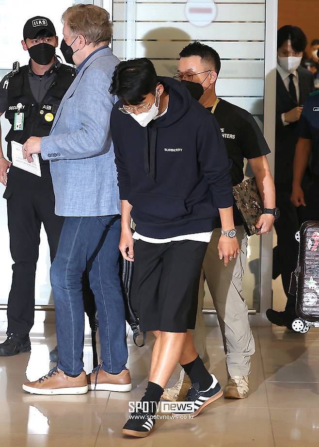 후드티와 반바지 편안한 패션으로 귀국하는 손흥민