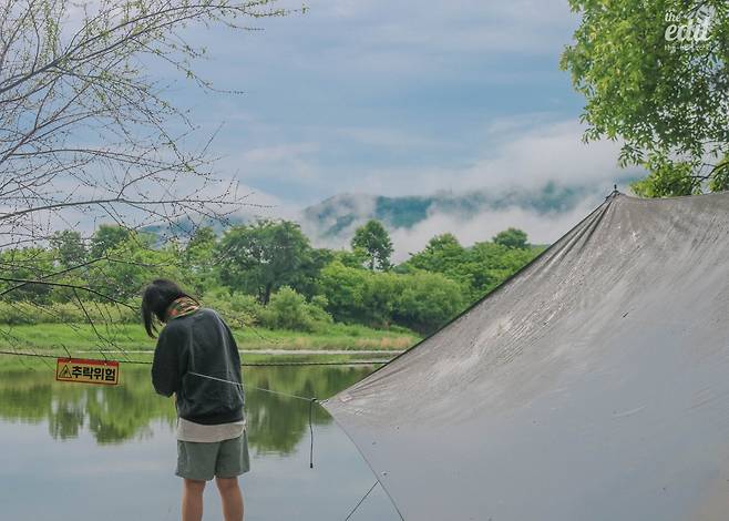 Tip. 장마철에는 환경을 더욱 세심하게 신경 써야 한다. 일기예보를 수시로 확인하자. 시간당 30mm 이상의 비 예보와 평균 초속 6m/s 이상의 바람이 예상되는 때는 캠핑을 포기하는 게 좋다. 야외활동에서는 안전이 최우선이다.
