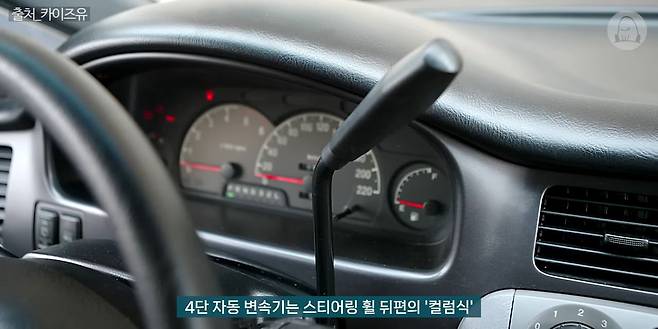 특이하게도 변속기 종류에 따라 기어레버와 사이드 브레이크의 위치가 바뀌었는데요. 5단 수동은 익숙한 플로어 타입으로, 4단 자동 변속기는 스티어링 휠 뒤편의 컬럼식, 파킹 브레이크도 발로 밟는 족동식으로 자리했습니다. 변속기 레버가 위치하는 중앙 콘솔을 비워둠으로써 1열을 3인승으로 구성하거나 좌석 간 이동을 수월하게 만드는 설계죠.