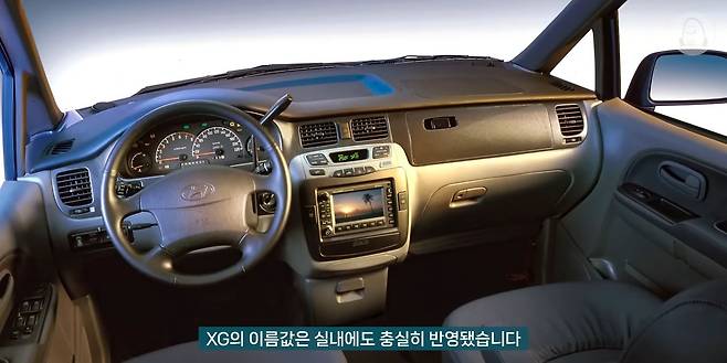 XG의 이름값은 실내에도 충실히 반영됐습니다. 고리타분한 운전자 중심 구조가 아닌 좌우로 펼쳐진 대칭형 실내는 세련된 분위기와 함께 넓은 실내를 더욱 넓게 느끼게 해 줬고, 그랜저 XG는 물론 당시 플래그십 에쿠스에도 없던 온갖 첨단 고급 사양을 휘감았어요.