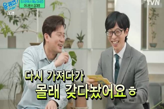 ‘유 퀴즈 온 더 블럭’에 '요즘 대세' 아나운서 김대호가 출연해 유재석 아내 나경은을 언급한 모습이 여전히 화제인데요~