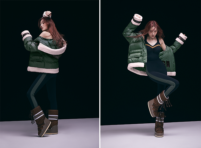선미는 무스탕을 떠올리는 멋스러운 숏패딩에 레깅스와 부츠를 매치하여 그녀만의 힙하고 트렌디한 원마일룩을 연출했죠.