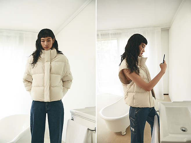 에그쉘 컬러에 깔끔한 디자인이 더해진 이 아우터는 투웨이로 활용할 수 있는 실용성까지 모두 갖춘 아이템인데요. 매력적인 아우터를 즐기고 싶다면 선택에 따라 다채롭게 코디할 수 있는 디태처블 패딩을 골라보세요.