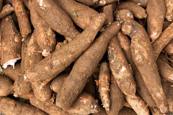 카사바는 남아메리카 원산의 녹말이 풍부한 뿌리작물이다. 브라질에선 만디오카(Mandioca)로 부른다.