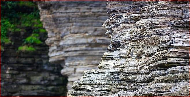 채석강은 단순한 절벽이 아닙니다. 역암, 사암, 이암, 셰일, 화산회가 반복되는 지층은 마치 수천만 년의 세월을 차례로 넘겨보는 느낌을 줍니다.