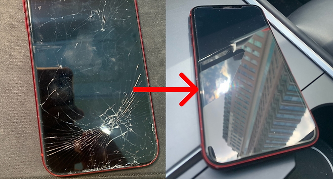 정확한 건 물론 수리 비용도 꽤 합리적이라 너무 만족스러웠네요. 주차도 편하고 마지막에 서비스로 액정 보호필름까지 붙여 주시니 더 좋았네요.