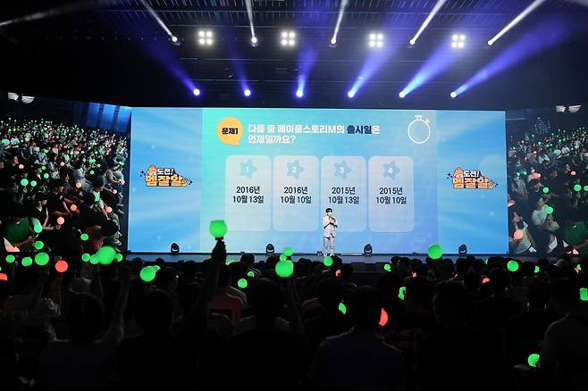 이후 게임과 관련된 여러 문제를 출제하는 ‘도전 멤잘알'이 진행된 가운데 가장 많은 문제를 맞힌 한 이용자는 5만 ‘크리스탈’을 획득했다. 무대에 깜짝 등장한 ‘메이플스토리M’ 김현승 총괄 디렉터는 모든 관객에게 5천 ‘크리스탈’을 선물해 뜨거운 호응을 이끌어냈으며, 이어진 보너스 퀴즈에서는 각종 현물 경품 및 인게임 보상을 선착순으로 선물했다.