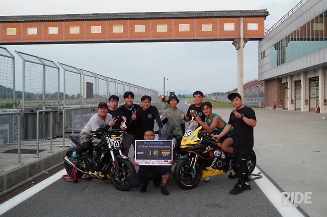 다른 한 사람은 내구레이스는 처음이지만 오래 모터사이클을 탔던 분이라 걱정 없이 탔는데, 제일 처음 스타트한 이후 2시간 동안 안들어왔다. 500AC의 연료탱크가 19L로 동급에선 상당히 큰 사이즈인데, 내구레이스에선 사실 주유가 시간을 제일 많이 잡아먹는 부분이라 주유하면서 선수 바꾸고, 선수 바꾸기 위해 주유하는 전략을 잘 짜야 한다. 일반적으로 300cc급은 1시간 타고 나서는 주유해야 하는데, 500AC는 연료탱크가 너무 크니까 2시간이나 타면서도 들어올 기미가 없었다. 처음 1시간이 될 때쯤 슈트로 갈아입고 준비하는데 계속 안들어오길래 사인보드로 들어오라 했더니 더 타겠다는 의사를 표시했다. 그래서 더 타겠다 싶어 1시간 반을 기다렸는데도 안 들어왔고, 결국 2시간을 꽉 채우고서야 들어오더라. 그래서 연비도 정말 좋은 모델이라는 생각이 들었다.