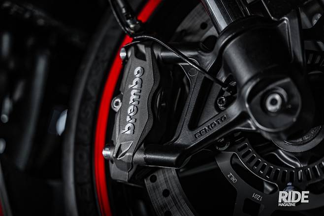 높은 성능의 엔진에 맞춰 서스펜션은 앞 37mm 역방향 텔레스코픽 포크, 뒤 모노 쇼크 업소버를 채택하고, 브레이크는 앞 320mm 디스크와 브렘보 4피스톤 캘리퍼, 뒤 220mm 싱글 디스크와 1피스톤 캘리퍼를 장착하고 ABS를 더해 우수한 제동력을 안정적으로 사용할 수 있도록 구성했다.