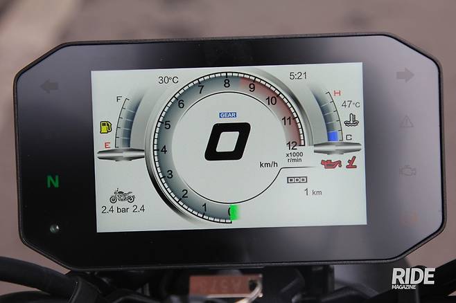 시트고는 795mm지만, 라이더 편의를 위해 785mm나 815mm로 높낮이 조절이 가능하다. 계기판 자리에는 5인치 TFT 커브드 디스플레이를 장착해 다양한 정보들을 빠르게 파악할 수 있으며, 스마트폰 연동을 통해 주행 중 전화 수신은 물론이고 차량 위치 파악, 주행거리 모니터링도 가능하다.