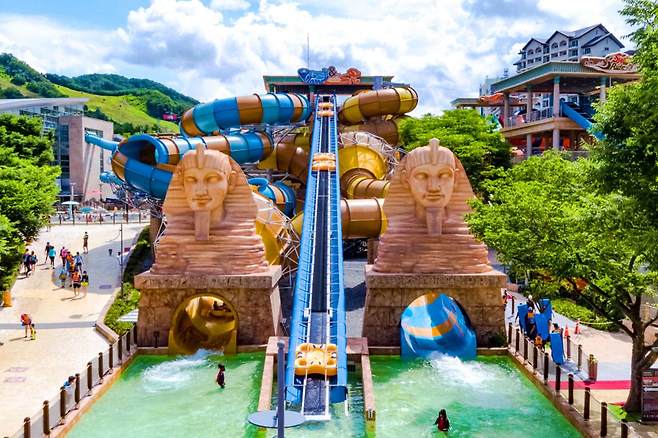 제주도에 위치한 신화 워터파크는 인기 있는 캐릭터와 이야기로 가득한 제주 신화 월드 리조트의 일부입니다. 아시아 최초의 230미터 길이의 슬라이드를 포함하여 다양한 슬라이드와 수영장이 있습니다.
