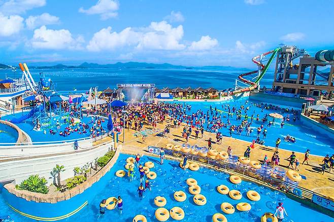 디오션 워터파크는 다도해 해상국립공원의 놀라운 전망이 있어, 나머지 워터파크와 차별화됩니다. 슬라이드를 타고 앞에 있는 푸른 바다와 산의 광경을 감상하는 것을 상상해 보세요.