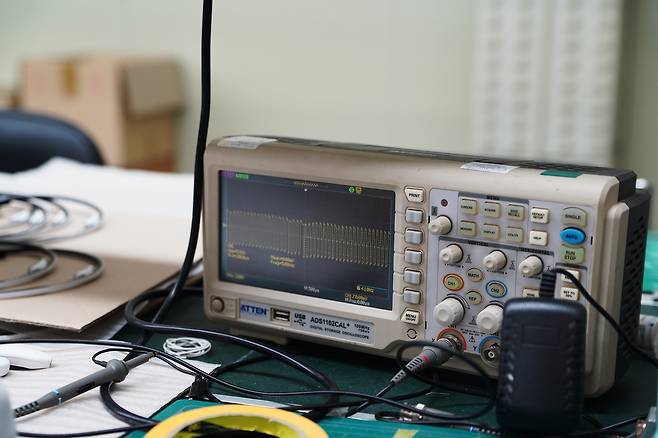 바로 옆에서는 충전부와 메인 모듈을 조립하고 있었다. 성인 손가락 하나 정도의 크기인 메인 모듈은 전기를 발생시키는 역할을 한다. 앞서 만든 머리띠에 메인 모듈까지 조립하면 제조 단계는 끝이다. 정 팀장이 “하나가 더 남았다”며 전압 측정기를 가리켰다. 정상 작동을 확인하기 위한 최종 테스트 절차였다. 전압 그래프가 크게 한 번 출렁이는 것을 확인한 후에야 세척 과정까지 거쳐 포장 상자에 들어간다.