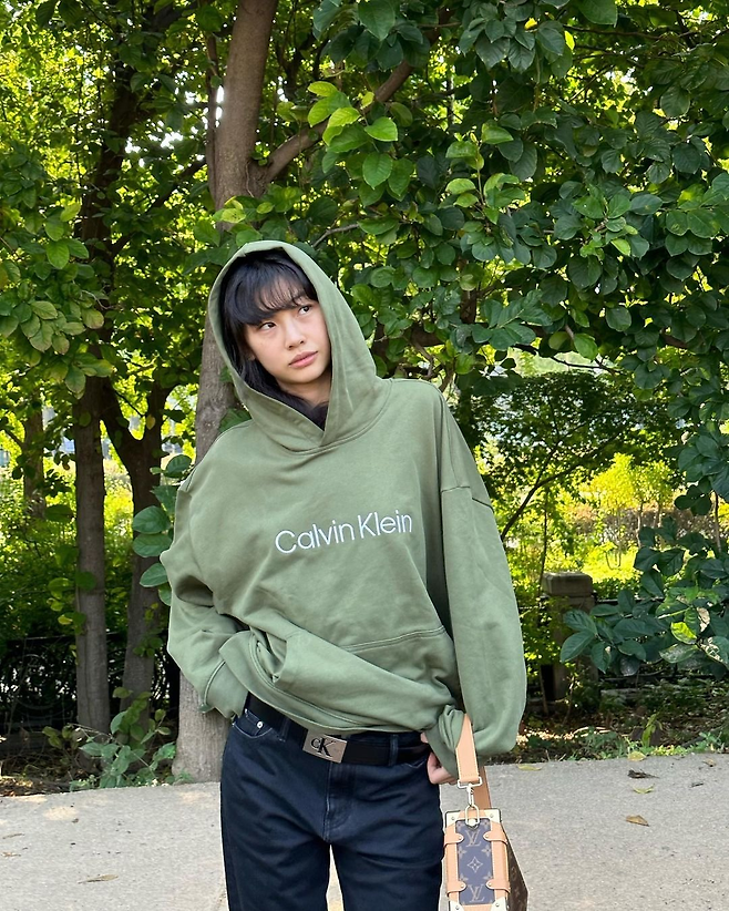 여기에 데님 팬츠와 볼드한 은장의 CKJA 벨트로 포인트를 준 정호연. 후드티를 살짝 올렸을 때 보이는 로고가 매우 매력적이죠? 사소한 디테일까지 챙긴 그녀의 남다른 패션 센스! 상의 뿐만 아니라 하의까지 완벽하게 연출하며 완성도 높은 패딩룩을 선보였네요.