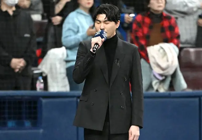 4일 오후 서울 고척스카이돔에서 열린 2022 신한은행 SOL KBO리그 포스트시즌 한국시리즈 3차전 키움 히어로즈와 SSG 랜더스의 경기에서 가수 카더가든(차정원)이 애국가를 불렀다.
