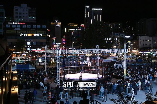 쌀쌀한 가을 날씨에도 이색적인 풍경에 많은 시민들이 경기를 지켜봤다.