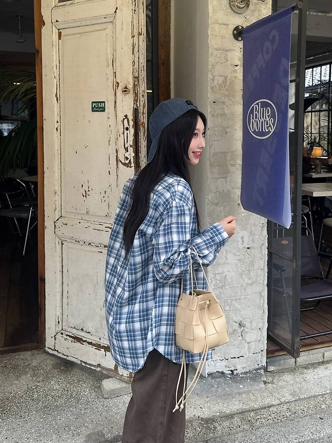 💙 Look 2. 트렌디한 감성의 블루 체크셔츠
