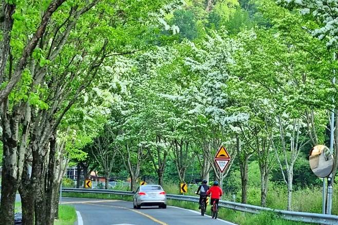 이팝꽃 터널길은 단장면 범도리에서 시작해 밀양댐 생태공원까지 약 4km 구간을 따라 펼쳐진다. 길 양쪽을 빼곡히 채운 이팝나무들이 한꺼번에 꽃을 피우면, 순식간에 하얀 터널이 완성된다. 걷는 이마다 마치 하늘을 걷는 듯한 기분을 느낀다.