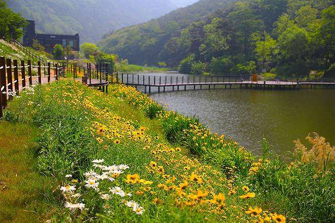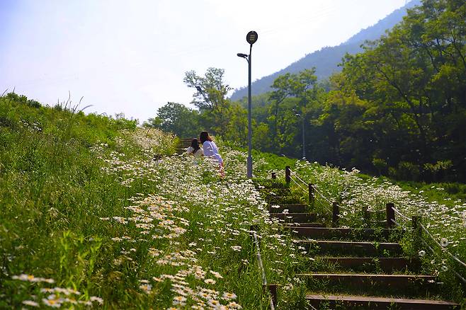특히 5월에서 7월 사이에 활짝 피어나는 샤스타데이지와 금계국은 진밭골 산림공원의 대표적인 볼거리다.