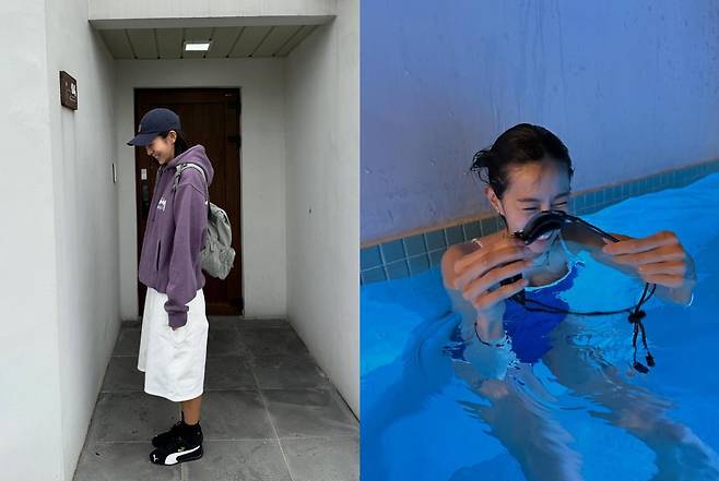 쌀쌀한 가을 공기 속, 보라색 후드티를 입은 그녀의 모습은 차분한 가을 그 자체였다. 하지만 푸른빛 수영장 물속에 들어간 순간, 그녀는 38살의 나이를 잊은 듯 천진난만한 소녀가 되었다. '수영선수 출신' 배우 유이가 10월의 마지막 날, 팬들에게 그녀의 가장 행복한 순간을 공유했다.