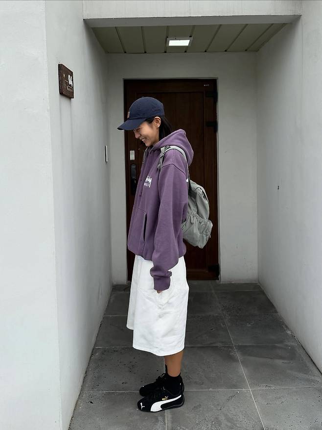 그녀는 31일 "10월 모음집"이라는 글과 함께 여러 장의 사진을 공개했다. 공개된 사진 속 유이는 보라색 오버핏 후드티에 흰색 버뮤다 팬츠를 매치하고 캡 모자를 썼다. 편안하면서도 감각적인 '꾸안꾸' 룩을 완벽하게 소화하며 패셔니스타의 면모를 뽐냈다.