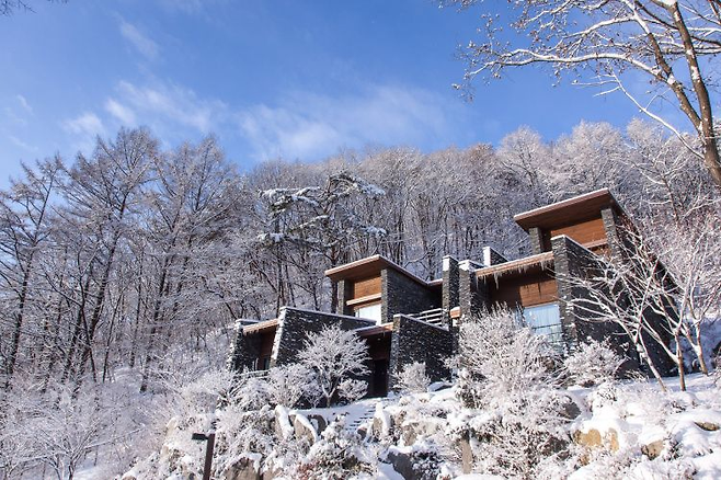 겨울철 고즈넉한 분위기를 만끽하고 싶으시다면, 제천 청풍호반 케이블카 근처에 자리한 ‘리솜 포레스트 제천’을 추천해요. 전 객실이 독채 빌라 형태로 운영되고 있어, 자연을 온전히 느끼며 프라이빗한 시간을 보낼 수 있어요.